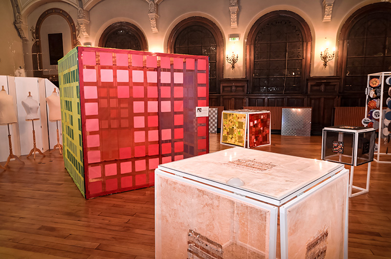 Exposition collective lycée. 8 et 9 Octobre. « Cube magique » Installation ; œuvre de papier et textile.