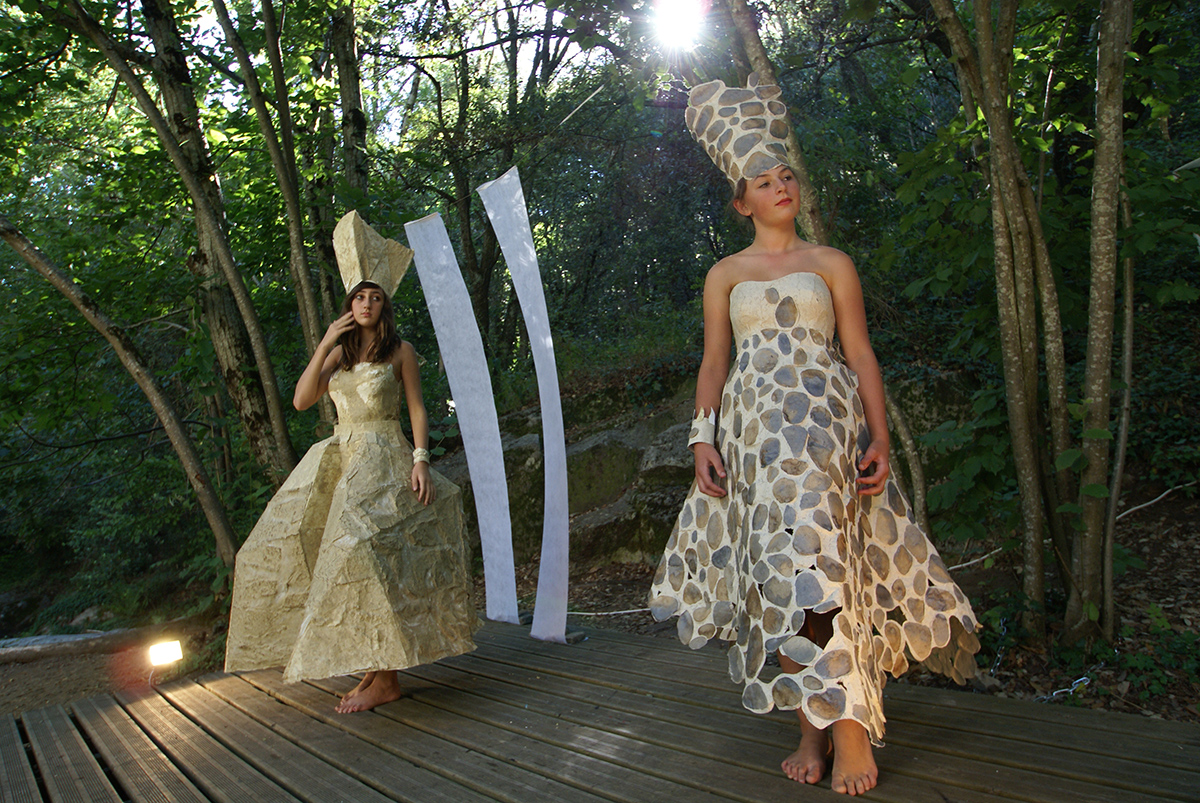 Débusquant le féminin secret, je crée des robes de papier et d’autres matériaux.