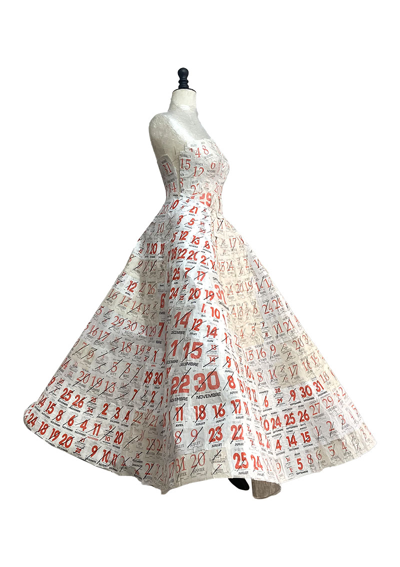 Débusquant le féminin secret, je crée des robes de papier et d’autres matériaux.