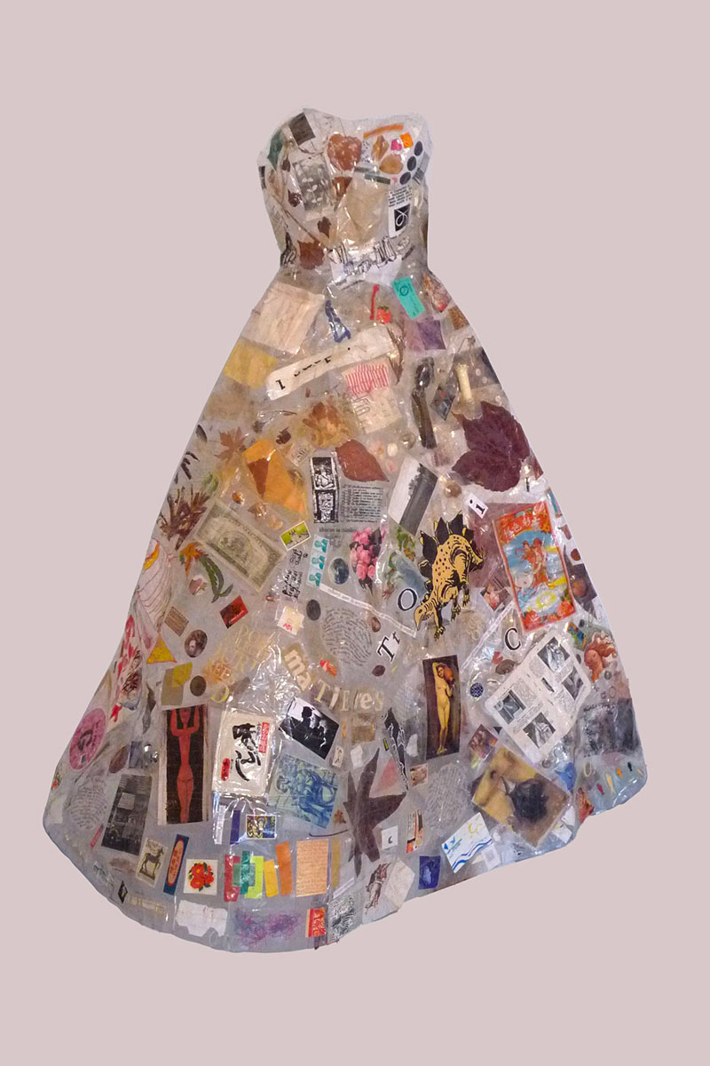 Débusquant le féminin secret, je crée des robes de papier et d’autres matériaux.