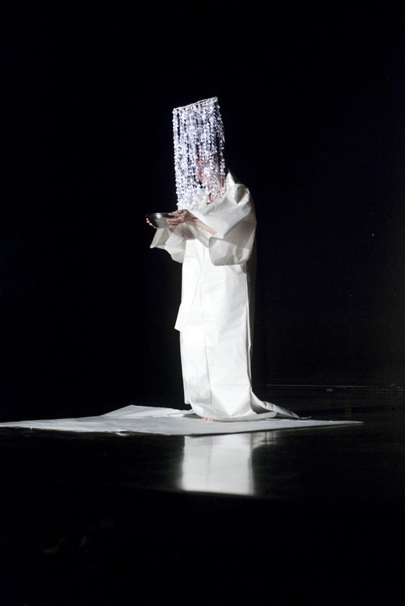 Débusquant le féminin secret, je crée des robes de papier et d’autres matériaux.